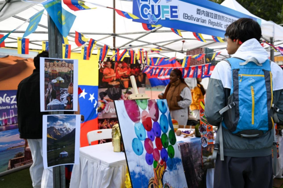 2025年10月18日,中央财经大学第五届国际文化节在学院南路校区操场隆重举行,作为庆祝建校76周年返校日的重要活动之一,本届文化节以“遇见世界·相约中财”为主题,通过多元、立体的交流方式,集中展示全球文化风貌,吸引了来自多个国家的近千名中外学子及返校校友参与体验。