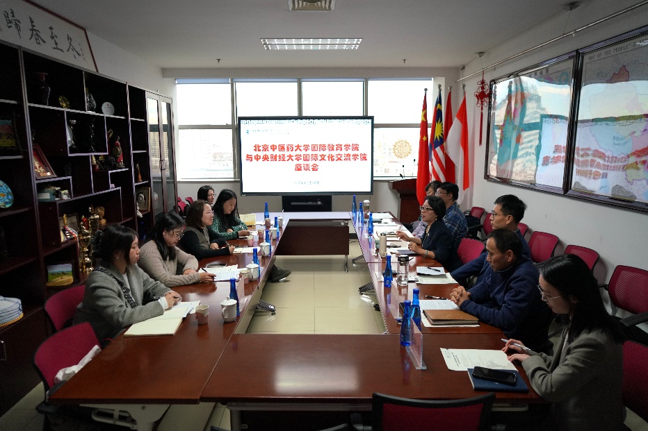 李春玲首先对北京中医药大学国际教育学院(国家中医国际传播中心)一行的到来表示欢迎。她介绍了国际文化交流学院的发展情况和未来规划。她表示中央财经大学和北京中医药大学两校关系密切,在来华留学教育方面有着广阔的合作空间,希望未来可以进一步加强交流。