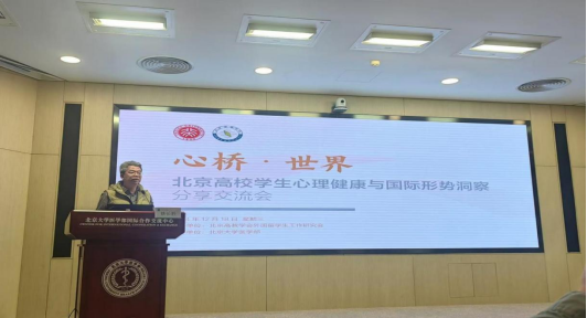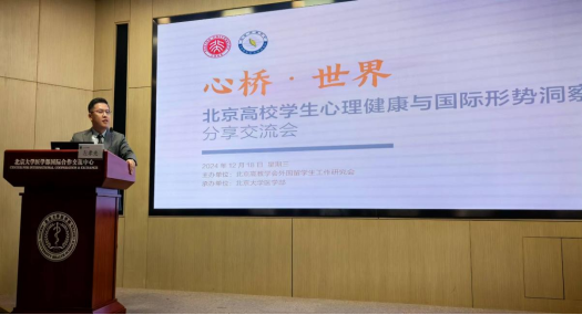 2024年12月18日,北京高校学生心理健康与国际形势洞察分享交流会在北京大学医学部国际合作交流中心举行,我校留学生管理干部朱贝、秋笛参加了会议,会议由北京大学医学部国际合作处副处长左孝光主持。北京大学国际关系学院王勇教授和北京大学第六医院黄薛冰主任分别就目前国际形势和中美关系以及学生心理健康问题进行了深入浅出的讲解和剖析。