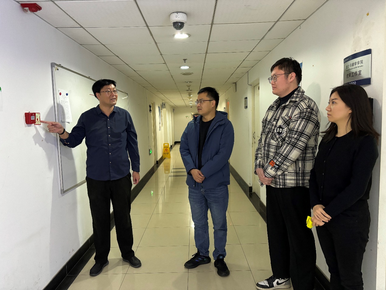 本次培训采取了实地讲解的方式。刘伟喆向三位2023年新入职的教工在十层走廊中讲解了消防安全常识、火灾预防措施以及疏散逃生方法等,并明确了疏散路线以及各类消防装置的位置和它们正确的使用方法。他指出,学院教工应正确认识到消防安全的重要性,提升消防安全意识。