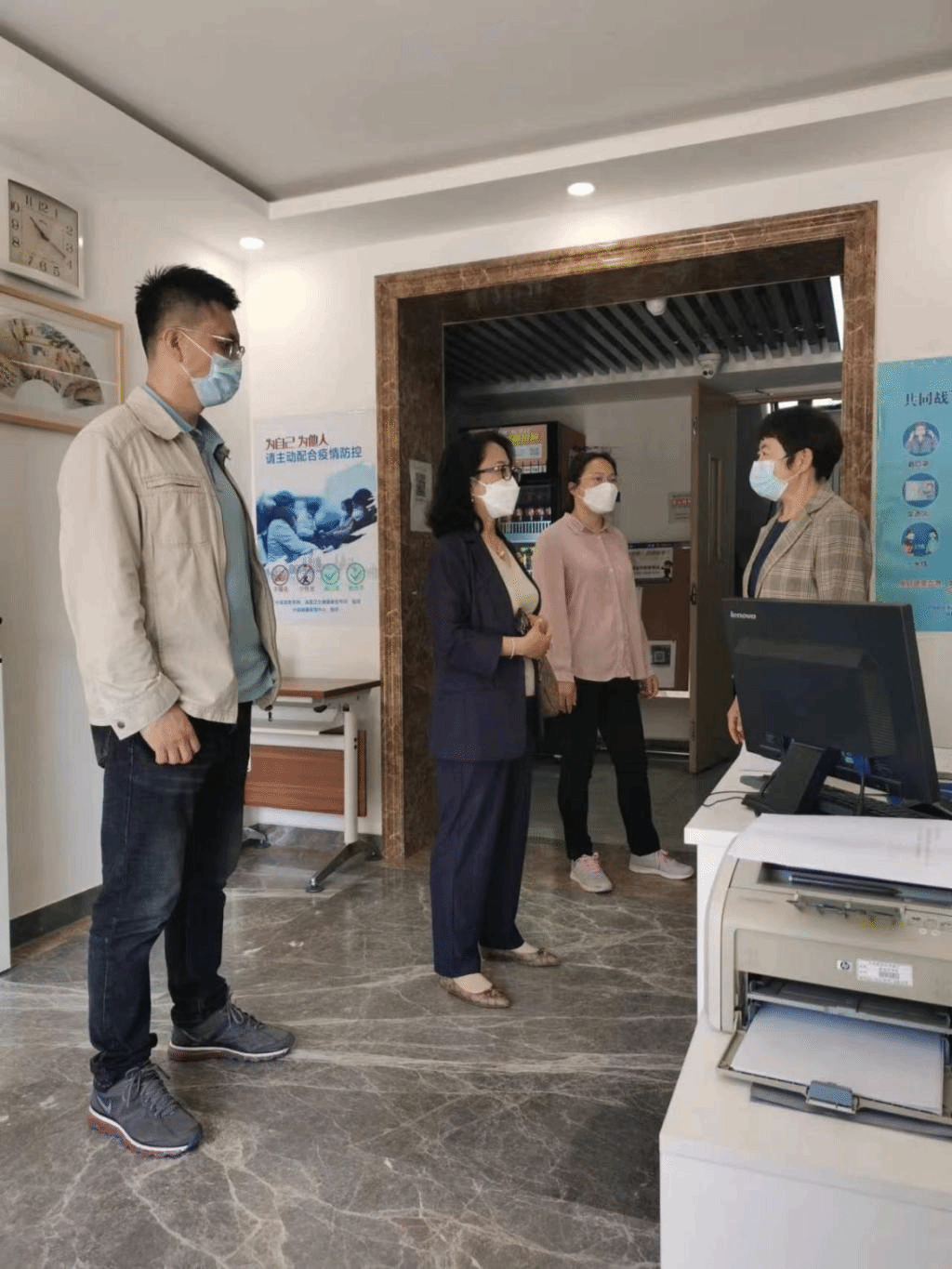 2022年5月4日,国际文化交流学院院长、留学生工作办公室主任李春玲、副院长陈香、张碘走访慰问在校留学生,检查指导留学生公寓管理工作。