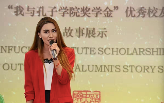 在“我与孔子学院奖学金”优秀校友故事会上,我校“汉语+国际商务”专业2019级硕士研究生乌兹别克斯坦籍希里作为奖学金生代表讲述了自己与中国文化和汉语的动人故事。“天赋就是好奇”是她在实习经历中收获的珍贵感悟;“只要有目标,一个明确的目标,梦想终有一天会实现”,是她在学习和生活中坚持的信条。她表示,在新的起点上,要感恩所得,珍惜时间,不忘初心,将来成为对社会有用的人。