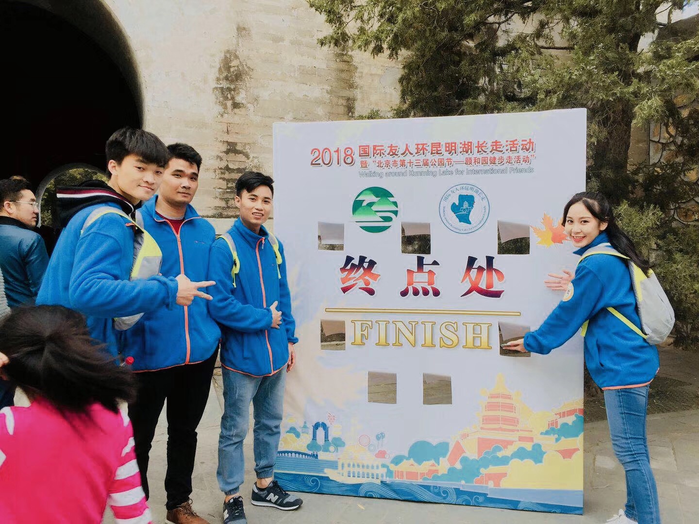 由北京市人民对外友好协会、北京市人民政府外事办公室、北京市人民政府新闻办公室等单位联合主办的“2018国际友人环昆明湖长走活动”10月27日在风景如画的颐和园举行,我校近30名2018级新生参加了此次活动,部分同学在一个多小时内走完了8公里的路程。