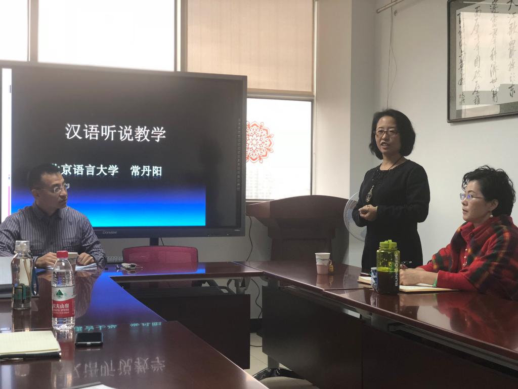 2018年11月15日下午,国际文化交流学院在中财大厦1032会议室顺利召开了第一次对外汉语教师教学培训讲座。本次讲座由北京语言大学的常丹阳老师担任主讲嘉宾,讲座题目为“汉语听说教学”。我院院长李春玲、副院长王国庆及全体汉语教师参加了本次讲座。