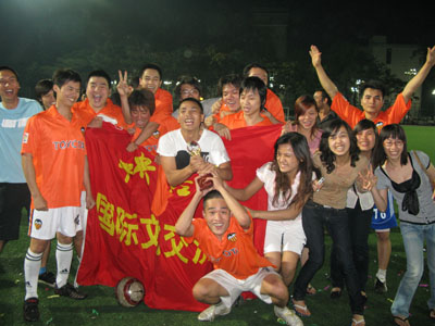 北京时间6月4日晚6点30分,我院留学生足球队在中财体育场迎战商学院足球队,这是本届中财寰宇杯足球赛的决赛,也是中财足球的巅峰对决。上半场双方以0:0进入休息时间,下半场我院足球队依靠快速的突破和良好的配合,最终2:0战胜商学院,夺得了本届中财寰宇杯足球赛的冠军。