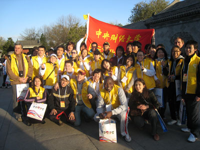 11月1日,在我校学习的60余名外国留学生参加了由北京市人民对外友好协会、北京市人民政府外事办公室等主办的“2008国际友人环昆明湖长走”活动。此次活动以“科学健身、快乐生活”为理念,共有来自40多个国家的近七百名体育爱好者和部分外国驻华使馆外交官参加。留学生们对此项活动表现出了浓厚的兴趣,认为既锻炼了身体,又娱乐了身心。