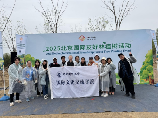 2025年4月18日,春雨润泽的北京市昌平区阳坊镇迎来了一场特殊的绿色盛会—“我与北京iBeijing”2025北京国际友好林植树活动。中央财经大学的15名国际学生作为留学生代表,与来自50个国家的近200名驻华外交官、外籍专家和留学生共同参与,以实际行动为首都增添新绿,架设中外友谊桥梁。