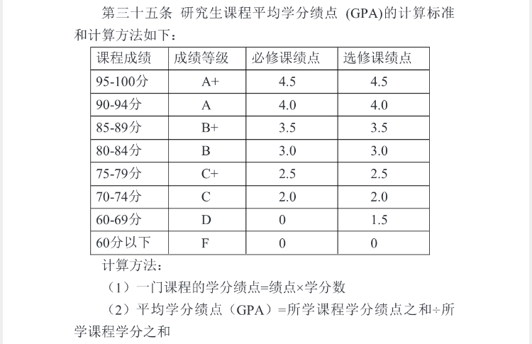 研究生课程平均学分绩点(GPA)的计算标准和计算方法参照《中央财经大学研究生教学管理规定》(校发[2017]159号)第六章第三十五条。具体如下: