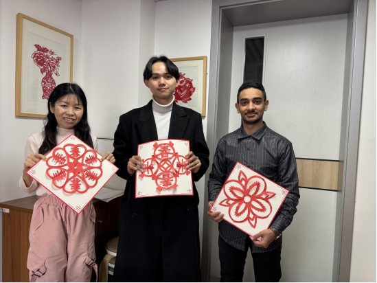 2月17日,在国际学生文化体验中心开展了剪窗花活动。来自泰国、越南、也门的国际学生参加了本次活动。活动中, 辅导员首先向同学们介绍了中国剪纸文化的背景以及剪纸方法。接着,同学们在老师的指导下剪出了一幅幅精美的窗花。