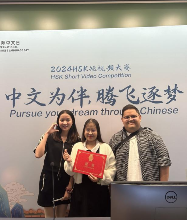 国际商务专业柬埔寨研究生肖迪同学:“作为中央财经大学柬埔寨的学生,我很荣幸参加了‘中文为伴,腾飞逐梦’HSK视频大赛颁奖典礼。虽然没有获奖,但通过观看众多优秀作品,我深受启发,并立志进一步提升自己的中文水平。此次大赛让我更加认识到中文的魅力与力量,它是连接不同国家和文化的桥梁。颁奖典礼的学术氛围浓厚,清华大学的卓越精神让我深感钦佩。这段经历坚定了我学好中文的决心,未来我希望能有更多机会参与类似活动。”