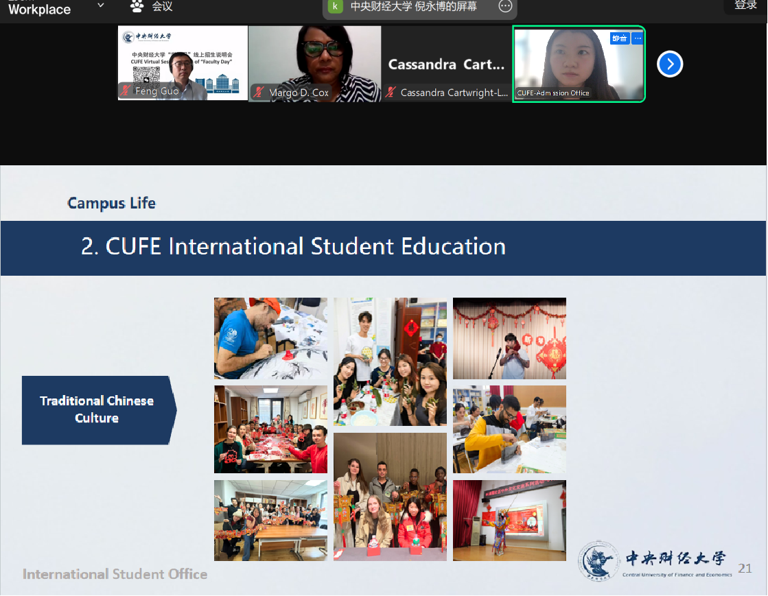 李恬祎介绍了学校的基础设施、留学生活动、全英文项目费用和在北京生活学习的优势,以及学校来华留学生体验中国传统文化,参加国际论坛,参观名胜古迹和组织社团活动的情况。