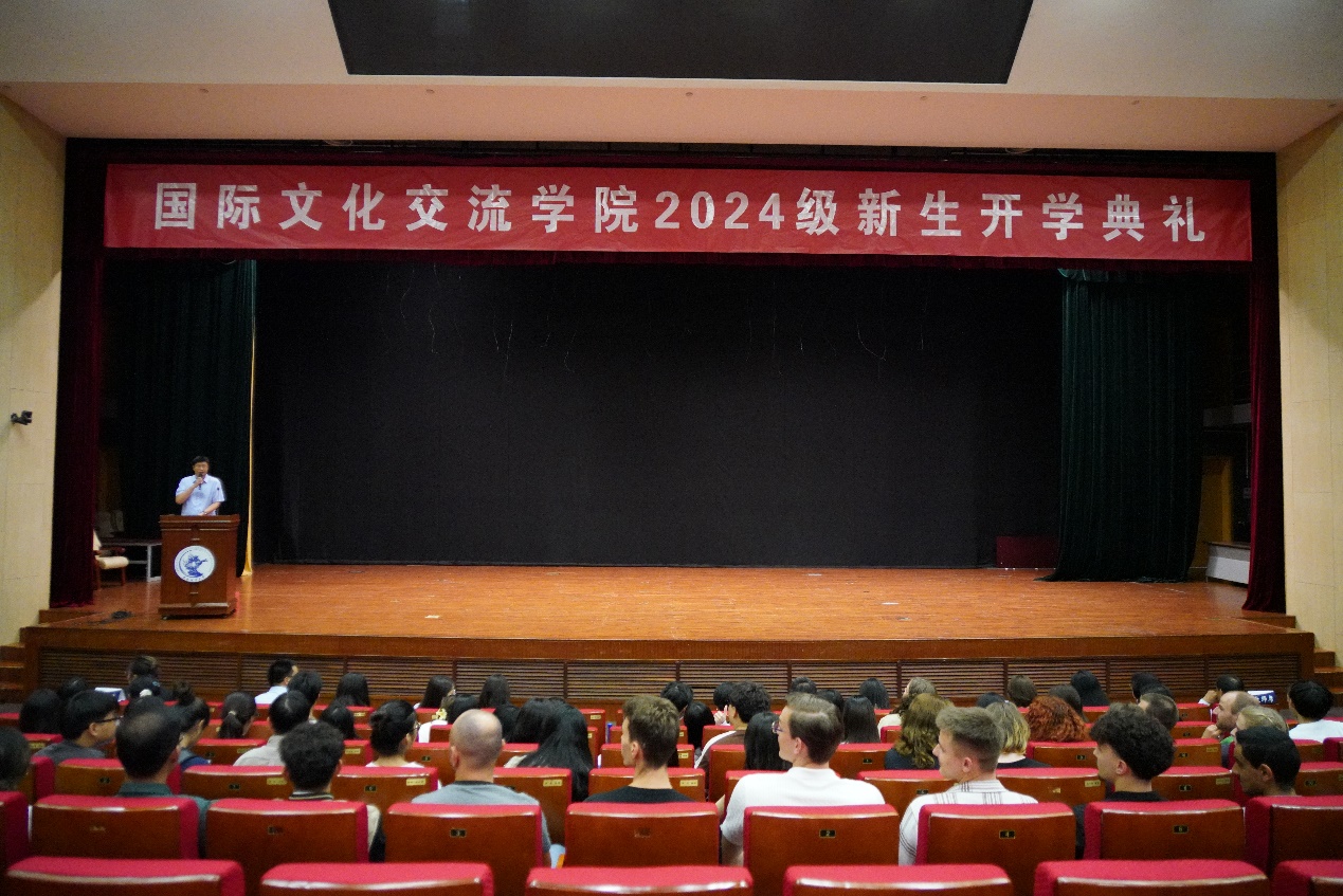 9月10日,国际文化交流学院2024级新生开学典礼在学术会堂206报告厅举行。国际文化交流学院直属党支部书记、院长、留学生工作办公室主任李春玲,副院长陈香,学院全体教职工及2024级新生参加了典礼。典礼由国际文化交流学院直属党支部副书记、学院办公室主任刘伟喆主持。