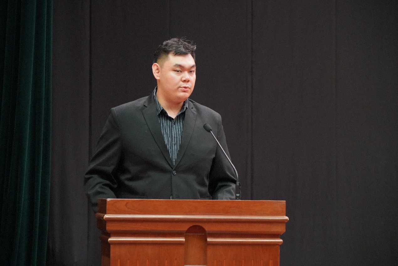 在校生代表——2023级汉语国际教育硕士专业学位研究生蒋华佳文和2024级金融学院本科留学生马龙发言。蒋华佳文分享了自己在中财学习经历,鼓励同学们不仅要深入钻研书本知识,更要在真实的教学环境中锤炼自己。马龙感谢了中国政府提供的留学机会和中央财经大学及所有老师们的辛勤付出,勉励同学们珍惜时光,努力学习,不负韶华。