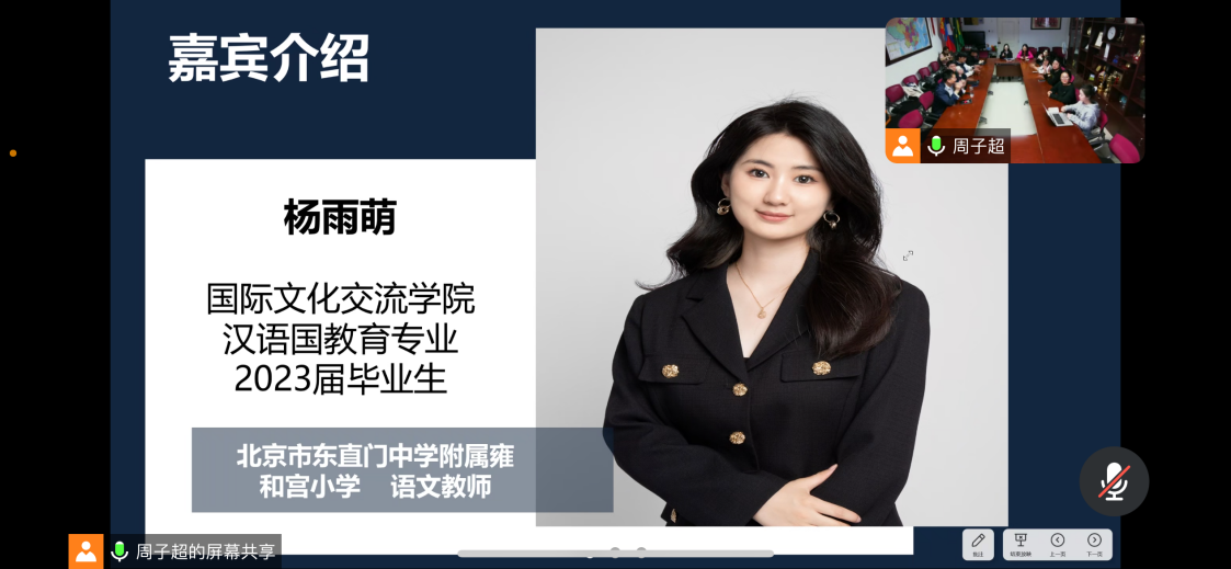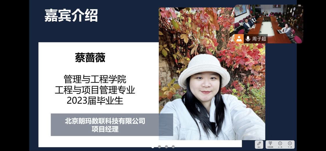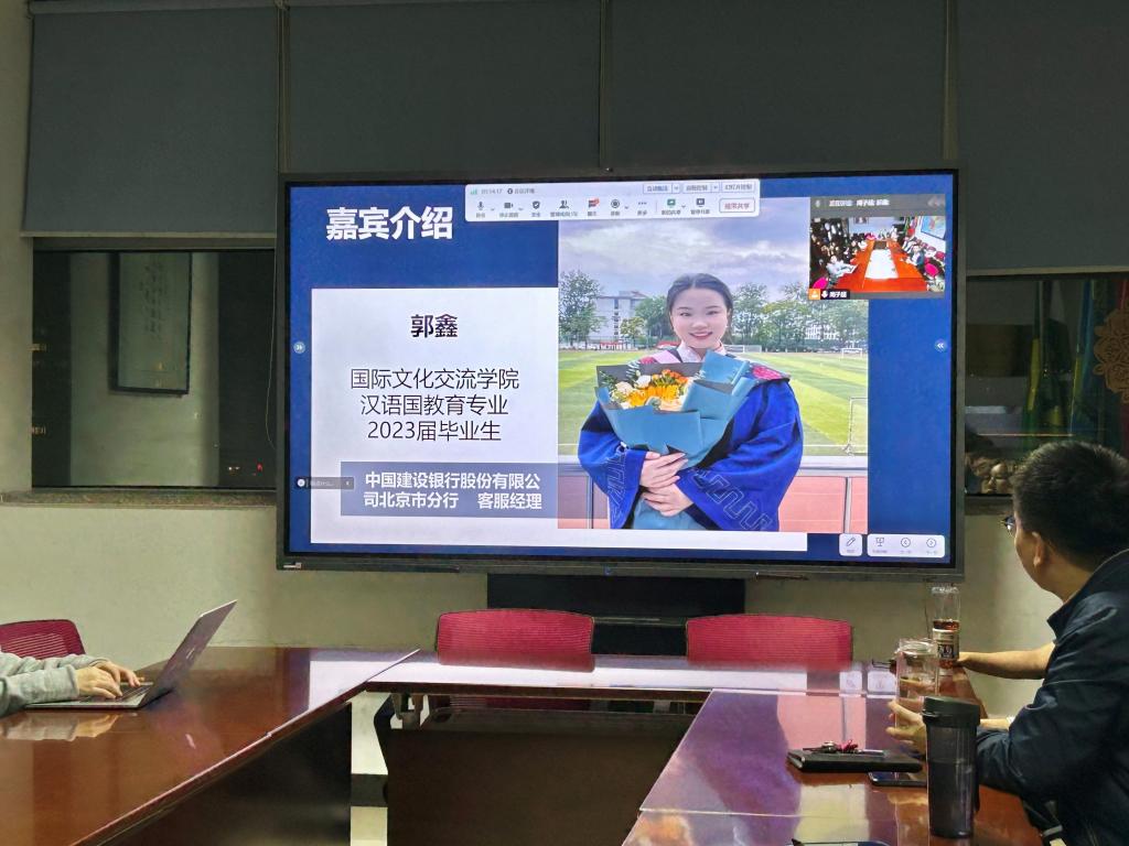 接下来由三位优秀校友:国际文化交流学院2023届毕业生杨雨萌、郭鑫,管理与工程学院印度尼西亚籍2023届毕业生蔡蔷薇为大家进行就业经验分享。
