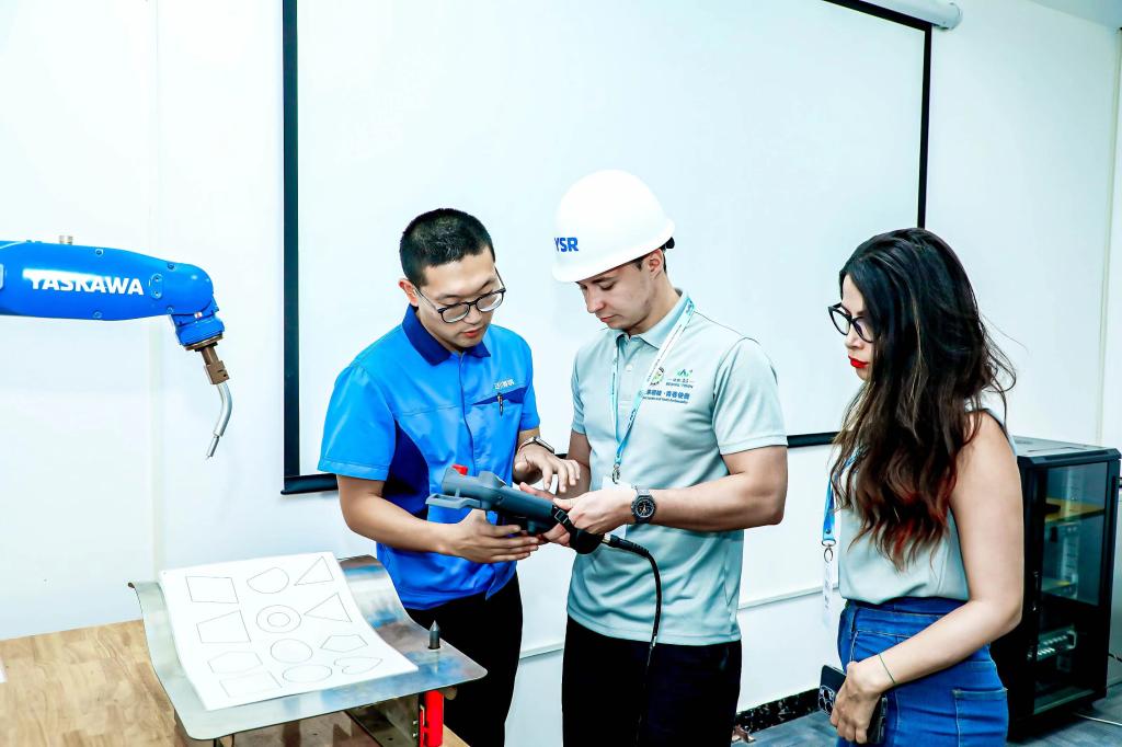 聚焦中小微企业创新发展的驱动力研究方面,中外营员走访了国家专精特新“小巨人”企业北京锐洁机器人科技有限公司,前往安川首钢机器人有限公司参观机器人焊接生产线和机器人实用功能培训系统,参观了苏州市规划展示馆与国家生物药技术创新中心,从内部驱动力和外部驱动力两方面分析中小微企业的发展路径,探究中小微企业落地成长背后的资源支撑和内在逻辑。