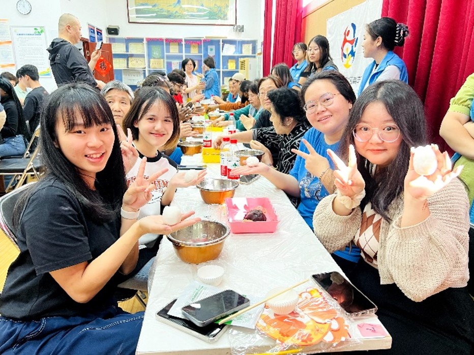 在表演结束后,社工为大家介绍冰皮月饼的制作材料和步骤,组织中外青年进行冰皮月饼制作。国际学生们亲手搓揉、包裹月饼馅料,通过这样的特色活动,让学生们在体验中感受中华非遗独特的魅力,加深他们对中国历史文化的了解,对增进中外文化融汇与交流起到推动作用。