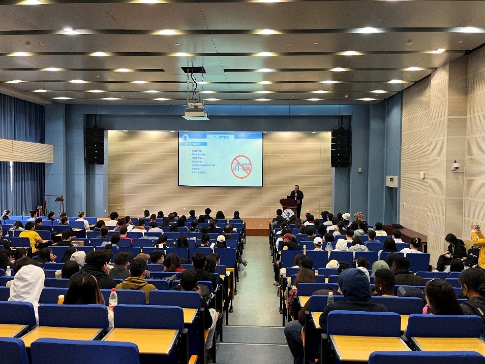 为切实做好国际学生安全教育工作,进一步提升国际学生的安全意识,4月27日,国际文化交流学院、留学生工作办公室在学术会堂402举办国际学生安全教育大会。本次会议由留学生管理办公室主任王岌主持,国际文化交流学院副院长张碘、全体国际学生辅导员以及200余名国际学生参加了本次会议。