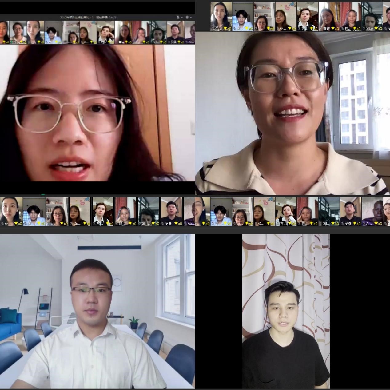 预科教学部主任胡梦、汉语课授课教师孙莉、数学课授课教师李琦和熊仲文分别通过现场发言或录制视频的方式分享了一年里与同学们相处的点滴。他们希望同学们在本科阶段继续努力学习,成为向世界传递中国声音的友好使者。