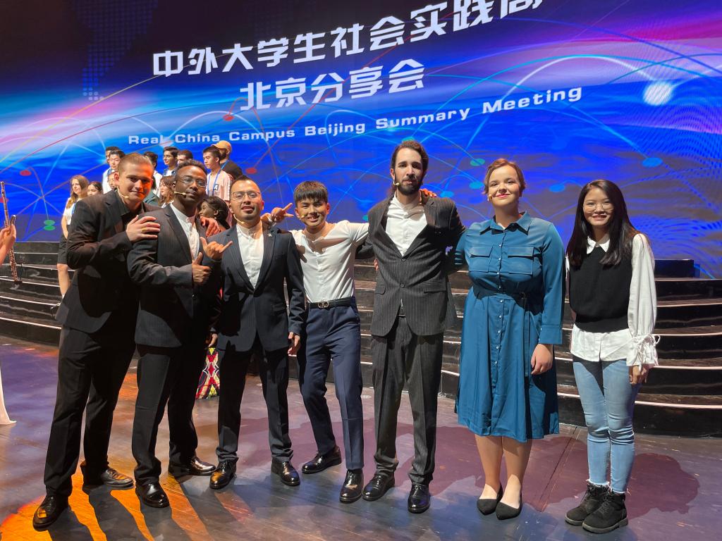 我校阿富汗籍学生杨乐、马达加斯加籍学生方俊驰,波兰籍学生苏琳、阿根廷籍学生秋乐、俄罗斯籍学生阿尔乔姆、韩国籍学生李元九、巴拿马籍学生叶嘉玲参加了于9月27日在世纪剧院举行的“中外大学生社会实践周”北京分享会,其中6位同学还参加表演了配乐诗朗诵”诗合天下,共筑未来”,通过吟诵各国经典诗歌,表达了对共建人类命运共同体的倡导和期待。