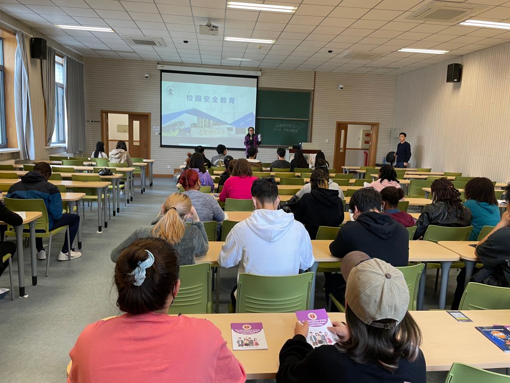 为切实增强国际学生的安全防范意识,国际文化交流学院、留学生工作办公室于2021年10月15日在学校主教楼306教室举办了“2021年国际学生安全教育专题培训”。全体在校国际学生70余人及留学生管理办公室、项目管理办公室老师参加了此次培训,培训由留学生管理办公室丁国英老师主持。