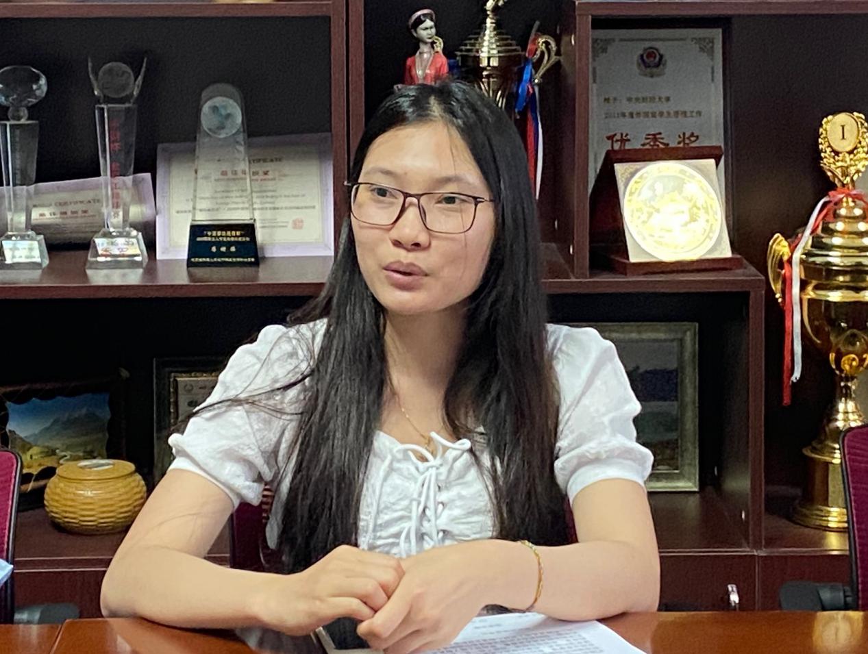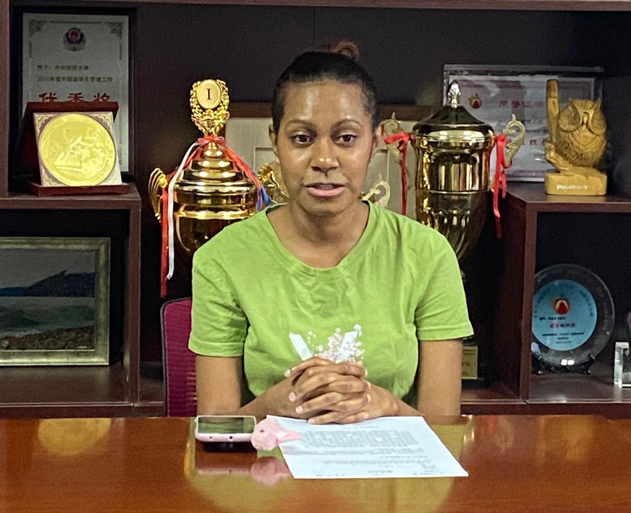 会计学院2019级会计学本科生罗丹丹(STACEY JASMINE ROBERT,巴布亚新几内亚籍)说巴布亚新几内亚疫情目前比较严重,但从去年开始,中国就向他们提供口罩等紧缺的医疗物资,她很感谢。她是来到中国之后才真正体会高铁和高速互联网的。她看到她的中国同学的努力和勤劳。有中国共产党的领导,有十分关心她的学校,她感觉很安全。