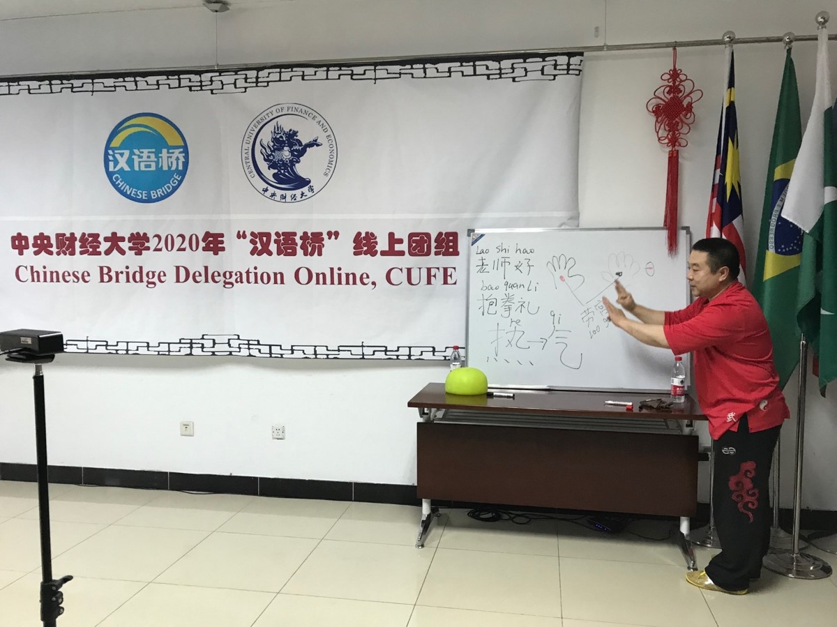 1月5日,中央财经大学2020年“汉语桥”线上团组项目中国文化体验系列课程第一课——《太极拳文化》开讲。本节课程由北京体育大学中国武术学院武冬教授主讲,来自巴西、蒙古和韩国的近百名国际学生通过“云端”学习的方式参加了本次课程。