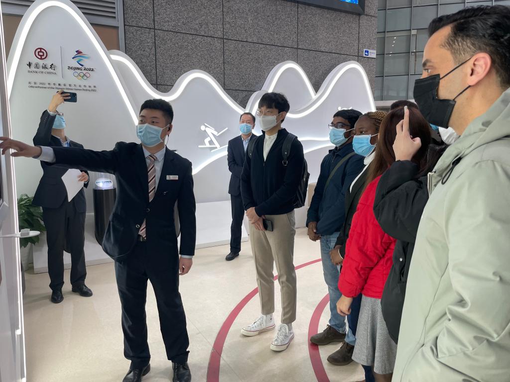 我校留学生在会前还参观了中国银行北京分行。同学们一致表示要用自己的所学为世界经济发展,为北京冬奥会贡献力量。