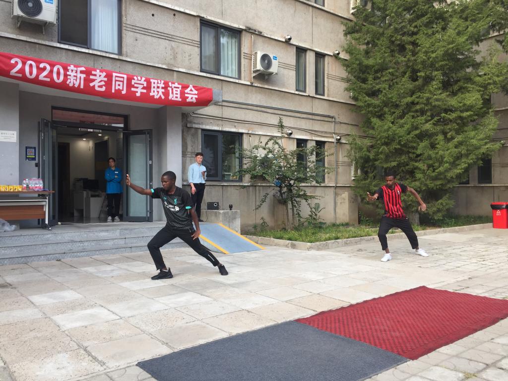 9月26日下午,为欢迎新同学,留学生工作办公室在留学生一公寓门前小广场举办了“2020新老同学联谊会”。联谊会上,2020级在校的新同学首先做了自我介绍,高年级班级代表对新同学表示了欢迎。随后,新老生通过歌舞、小游戏等形式进行了联欢。