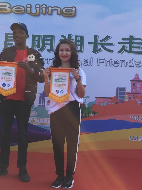 长走活动开始前,我校六名来自俄罗斯、乌克兰、哈萨克斯坦的女生还表演了动感十足的现代舞,获得了最佳表演奖。今年是环昆明湖长走活动举办的第十九年,我校几乎年年有留学生参加。在今年的活动中,我校再次获得最佳组织奖。