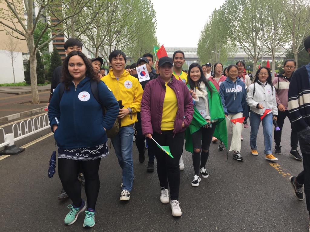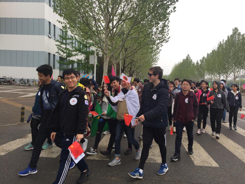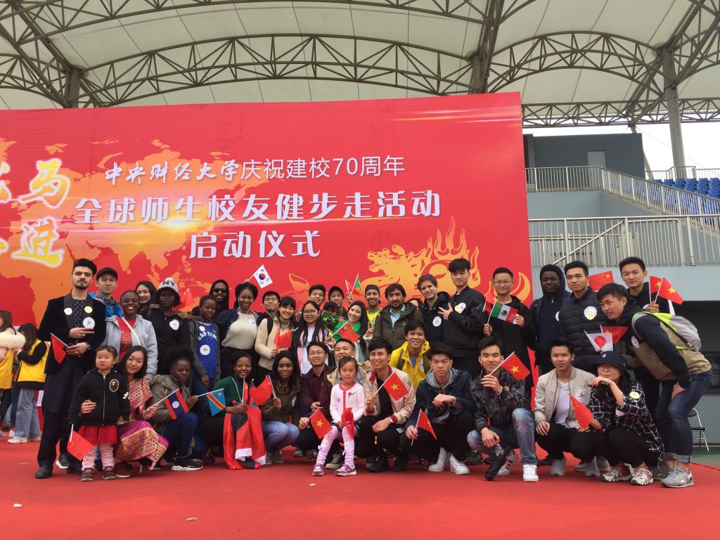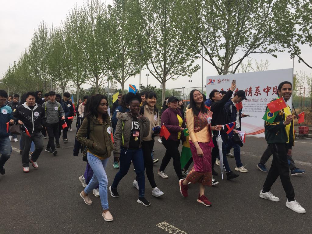 作为七十周年校庆活动之一的“龙马奋进”中央财经大学全球师生校友健步走活动4月20日在沙河校区举行。我院四十二名国际学生与一千余名中财大师生校友一起参加了此次活动。