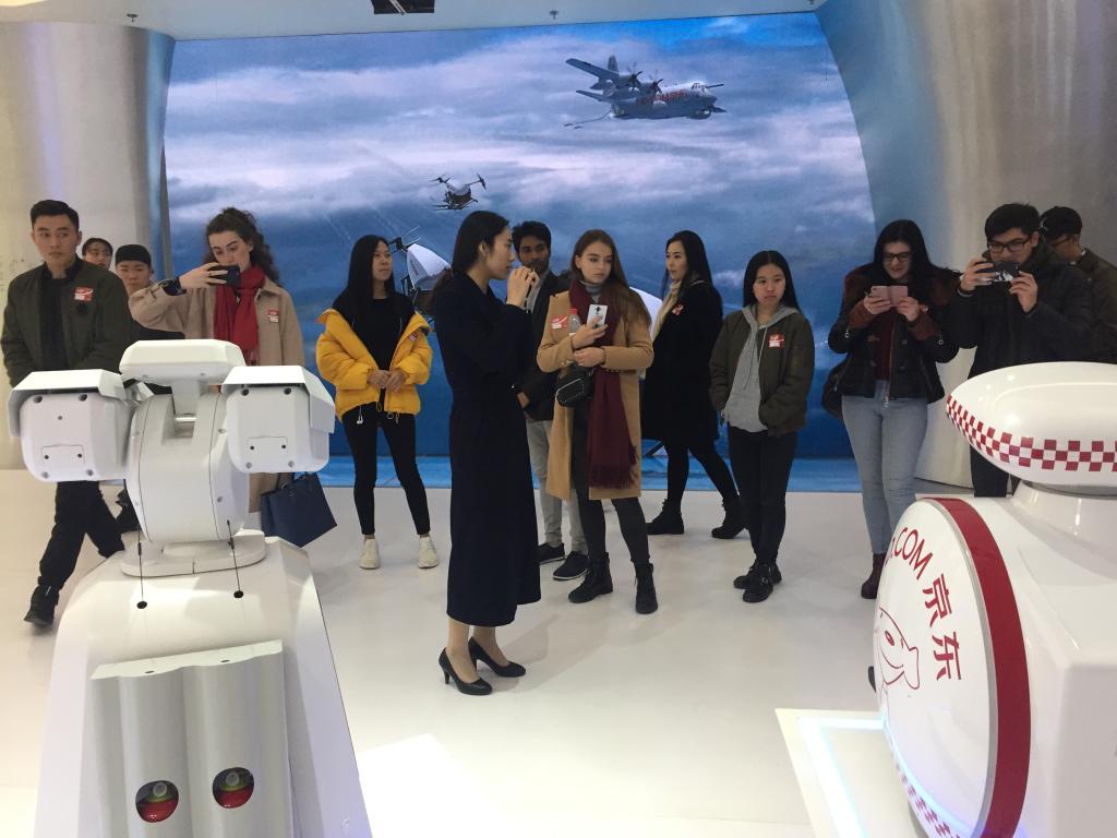 作为一家大型的电商企业,留学生们对京东充满了兴趣和好奇。通过此次参观,同学们对京东商城、京东金融和京东物流有了深入的了解,对于京东在商业领域一次又一次的突破创新,取得的跨越式发展,尤其是高新技术的运用倍感惊奇和赞叹。有的同学说:“参观后,感受到了技术的发展与网上购物的未来,毕业后,我要争取把这些引进到我的国家。”有的同学说:“参观后脑子里唯一想的就是在这个机器化的时代,毕业后找到工作可能会更加不容易了”。对此,老师鼓励同学们努力学习,积极进取,跟上时代发展的步伐,让知识引领未来。