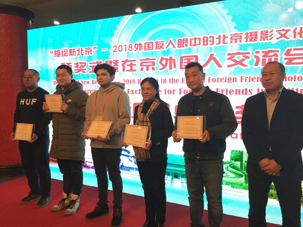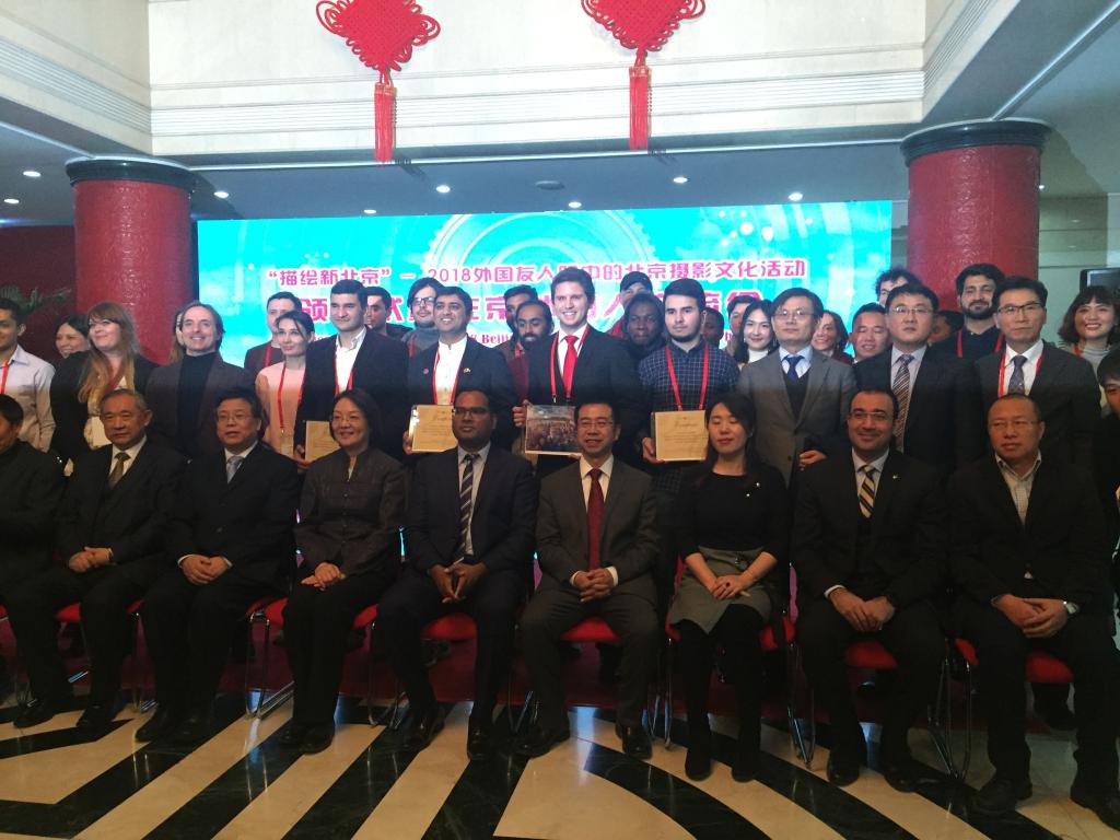 2018年12月14日,“描绘新北京”——2018外国友人眼中的北京摄影文化活动颁奖式暨在京外国人交流会在北京市人民对外友好协会召开。在来自60个国家摄影爱好者的三千多幅作品中,我校巴西籍留学生龙奥立和缅甸籍留学生刘婉婷的摄影作品荣获“优秀奖”和“最佳人气奖”,7名留学生获得“入围奖”,我校获得“最佳组织奖”。