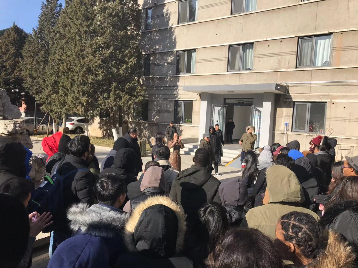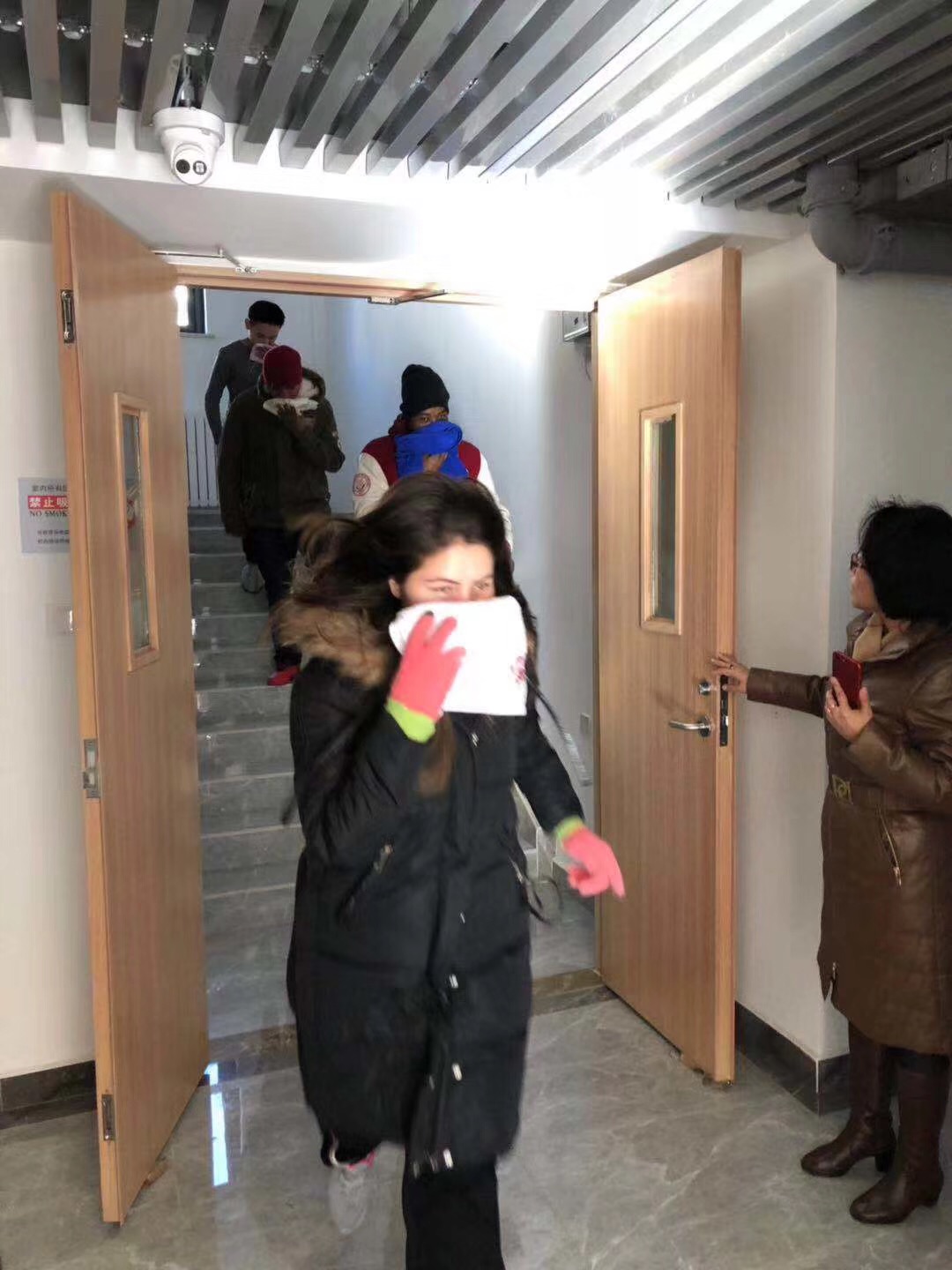 演练前,留学生管理办公室的老师向每个班级的同学详细讲解了演练的目的、要求、程序及注意事项,并在各班级微信群发了演练方案。演练过程中,全院老师分工负责各个环节,确保了演练顺利完成。大约有150余名在留学生公寓住宿的留学生参加了演练。虽然近日天气异常寒冷,但同学们积极配合,一致认为这种演练很有必要,感谢学校对留学生公寓安全工作的重视,一定会从自身做起,提高安全意识。