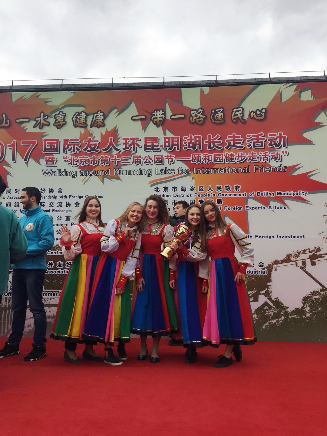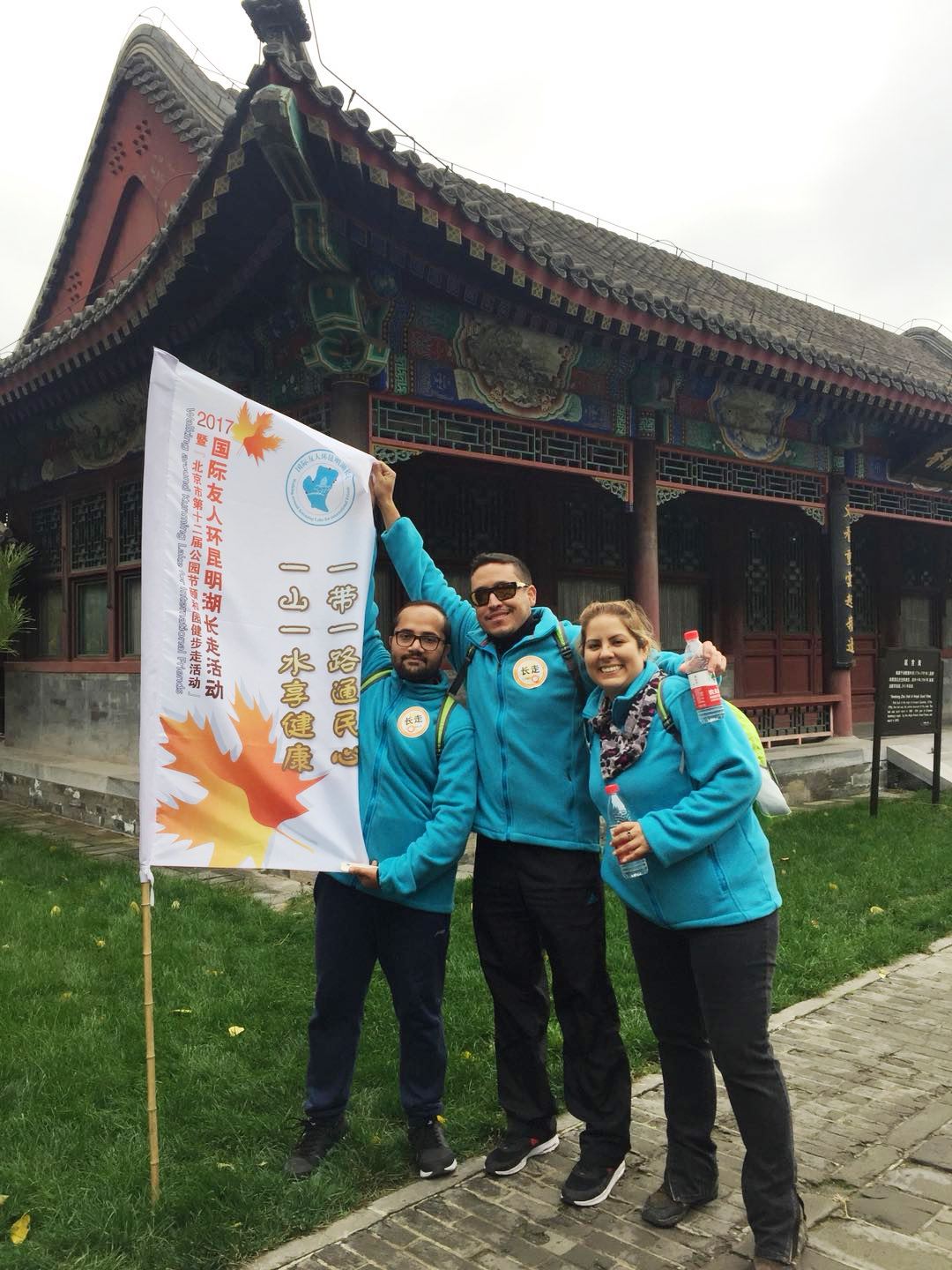2017年10月28日下午,我校34名国际学生与来自70多个国家的600余名各国驻华使馆官员、驻京外国机构工作人员、公司职员、专家、国际学生一起参加了2017国际友人环昆明湖长走活动。本次活动以“一山一水享健康