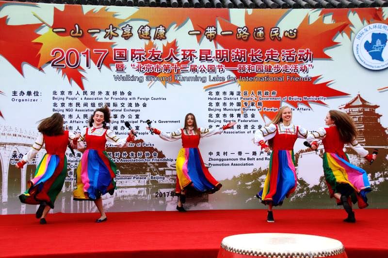在活动开始,我校4名俄罗斯籍和1名乌克兰籍学生参加了开场演出,表演了优美动听的俄罗斯歌舞,受到了参加长走活动的国际友人热烈欢迎,掀起了出发前的小高潮。参加长走的国际学生全部走完8公里行程,在体育锻炼中融入大自然,享受人与自然和谐之美,愉悦身心。