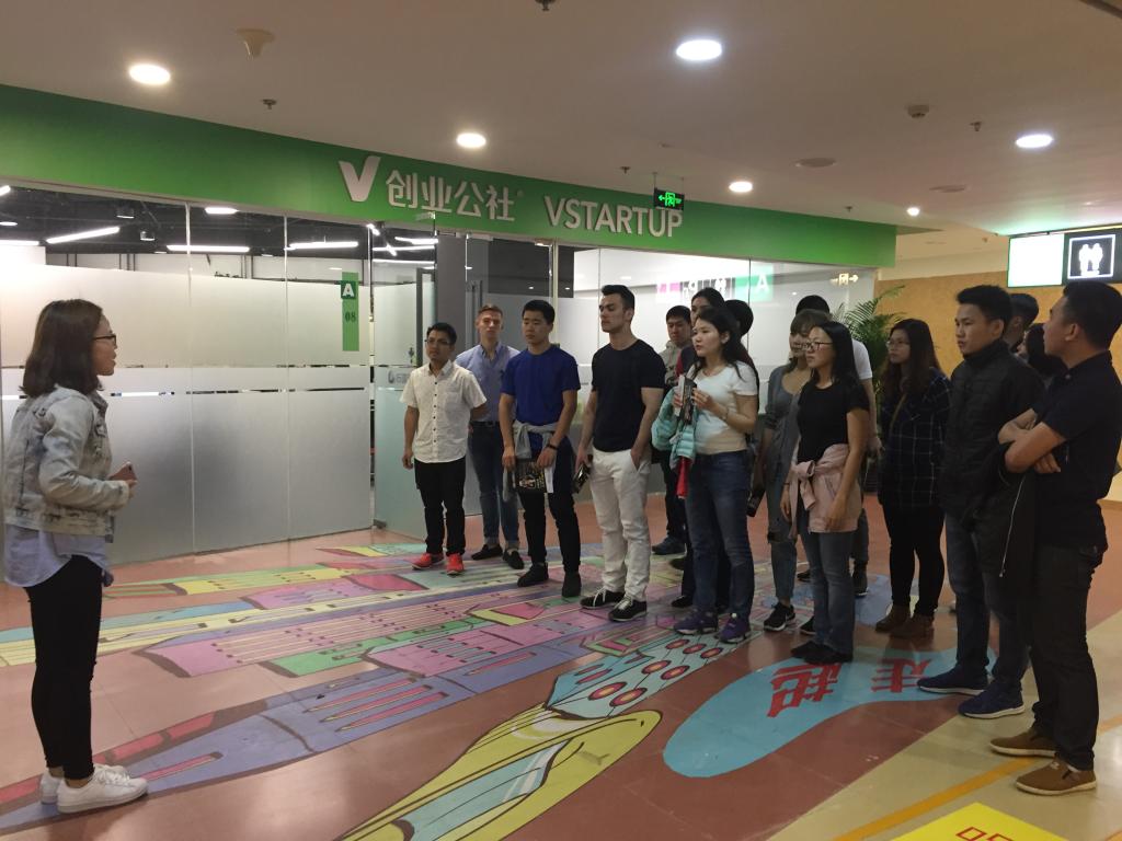 作为国家级孵化器,创业公社现已发展成为北京市规模最大、服务最全、空间最优的创业生态运营商。下沉式的广场十分开阔,明亮的玻璃墙可以仰望蓝天,优美、舒适、现代的环境吸引了留学生们的目光。通过参观,同学们了解了创业公社的基本发展概况,亲身体验了VR技术等部分产品的功能,无不为之而震撼。同学们一致认为,这是一次很有意义的实践活动。