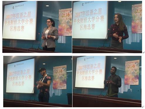 2017年4月19日,下午13点30分,我校国际文化交流学院的师生汇聚一堂,在学术会堂702室,举办了2017北京市来华留学生“汉语之星”大赛——中央财经大学分赛区的海选赛。