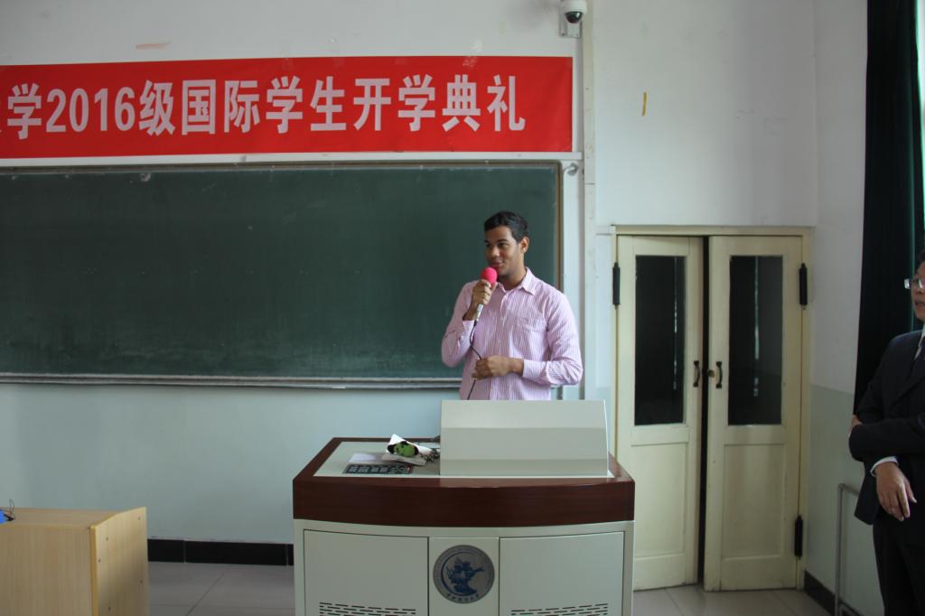 信息学院2016级计算机科学与技术专业本科生、来自多米尼加共和国的马努尔同学代表新生发言,表达了自己的激动与喜悦之情。他说,之所以选择很大、很美的沙河校区与中国同学一起学习,是因为有利于尽快掌握汉语。虽然会面临困难,但是有信心在老师的指导、同学的帮助下顺利完成学业。