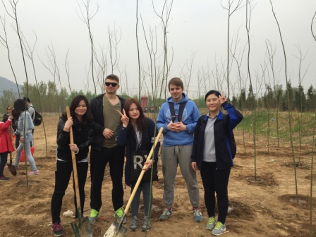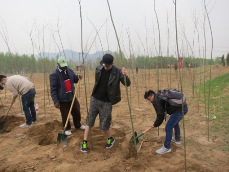 春暖花开时节,我院组织在校留学生赴怀柔区参加了植树活动。作为在北京学习生活的留学生,同学们用自己的双手,种下了一棵棵树苗,为北京的绿化、空气的清新贡献了一份力量。植树之余,留学生们也被怀柔区秀美的山水景色所吸引。同学们深感,这么美丽的景色,如果能有蓝天的映衬将是人间仙境。