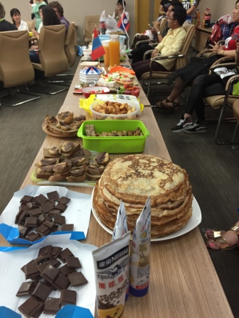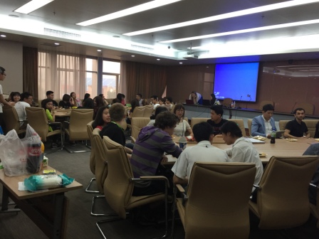 6月10日晚上,2015中央财经大学第二届“国际青年范儿”系列活动——中外文化沙龙在学术会堂706会议室举行。来自越南、蒙古、哈萨克斯坦、俄罗斯、老挝、缅甸、巴西等国的留学生与国际经济与贸易学院的中国同学一起,开展了丰富多样的文化交流活动。留学生们不仅介绍了自已国家的概况和文化,还亲自制作了多种香味扑鼻的食品,比如越南的春卷,俄罗斯的煎饼,老挝的糯米团、沙拉,蒙古的奶干、果汁,哈萨克斯坦的马肉等。中国同学准备了北京小吃驴打滚、豌豆黄等让留学生们品尝。中外学生还通过游戏增进了解和交流,大家在欢歌笑语中度过了一个难忘的夜晚。