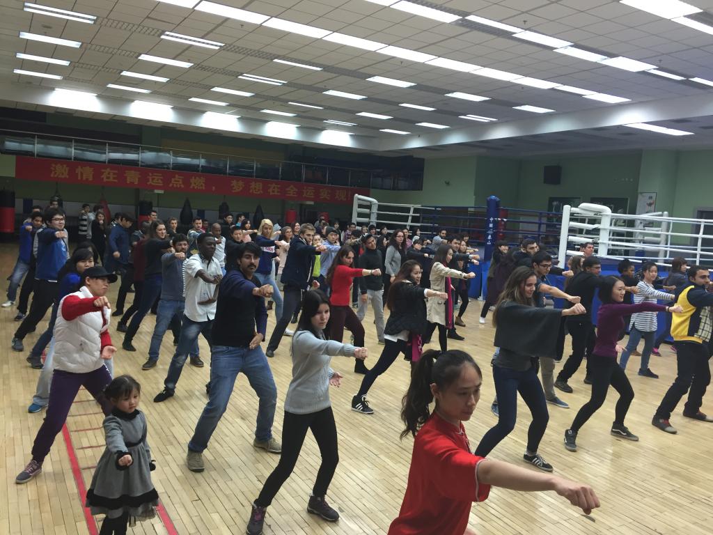 近日,我院部分国际学生参加了由北京国际教育交流中心主办的“2015首都外国留学生中国国情大课堂文化参观体验活动”。同学们走进了金碧辉煌的国家大剧院,观看了中国民族音乐会和中国民族民间舞蹈;走进了什刹海体校,学习体验了太极拳,观看了北京风情功夫剧表演,感受了中国武术的魅力。
