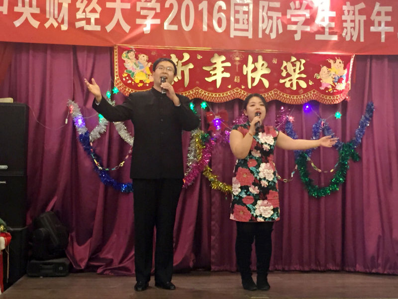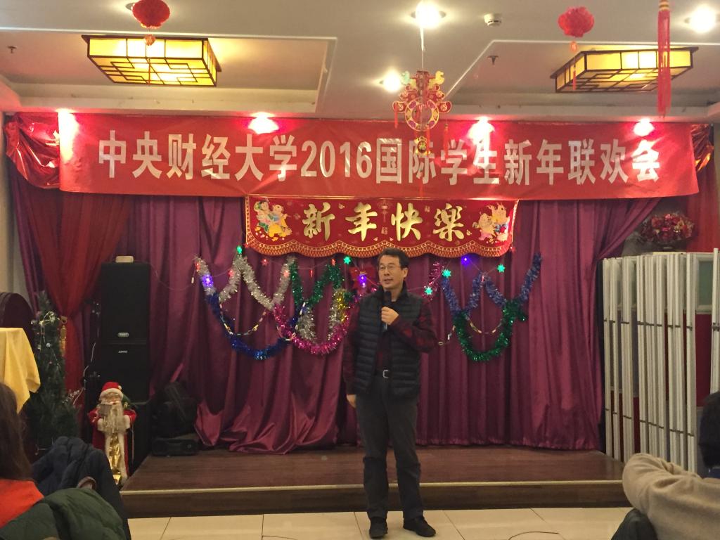 副校长李俊生出席晚会,并发表了热情洋溢的新年祝词。他向在我校学习的国际学生以及他们的亲人致以新年的问候;对一年来国际学生在学习和各项相关活动中所取得的成绩表示祝贺;对中国各级政府和社会的方方面面对中央财经大学国际化建设所给予的各种支持表示感谢;对在国际化教学、科研、管理和生活支持等方面辛勤工作教职员工表示亲切的慰问。他结合自己的海外经历和培养攻读博士学位国际学生的体会,与国际学生分享了异国学习、工作和生活的经验,鼓励国际学生,在新的一年里,继续努力学习,积极进取,锻炼提升自己的能力,学有所成。
