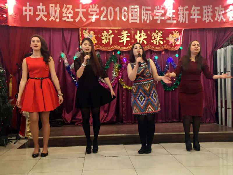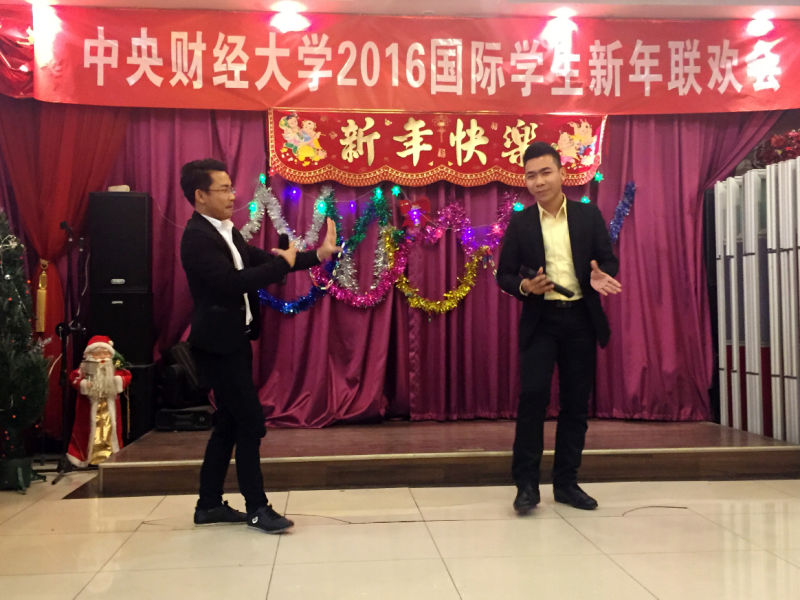 国际学生代表在联欢会上先后发言,畅谈了在中央财经大学学习和生活的感受和经验,表达对学校、老师和同学的感激之情,转达了已经毕业的国际学生校友通过微信从世界各地传来的对母校、老师和同学的思念,送上了对全校师生和亲人的新年祝福,表达了对明年校园国际化水平进一步提升的期待。