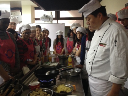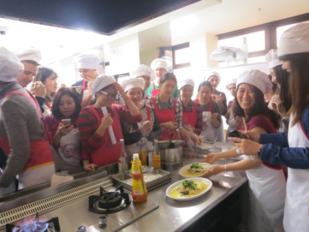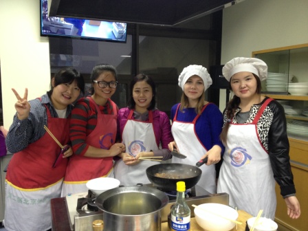 10月31日,我院部分国际学生参加了由北京市国际教育交流中心举办的“2014首都外国留学生中国国情大课堂——中国菜烹饪课”。留学生们观看了淮扬菜大煮干丝、四季烤麸的制作过程并亲自进行了操作、品尝。此次活动受到了留学生的一致称赞,同学们希望能有更多的机会感受中国菜的“奥秘”。