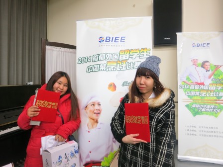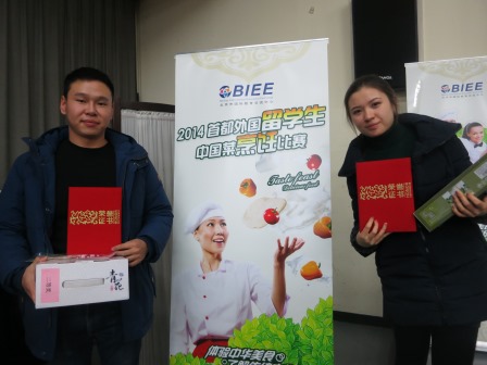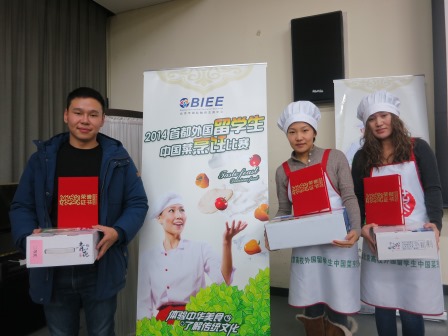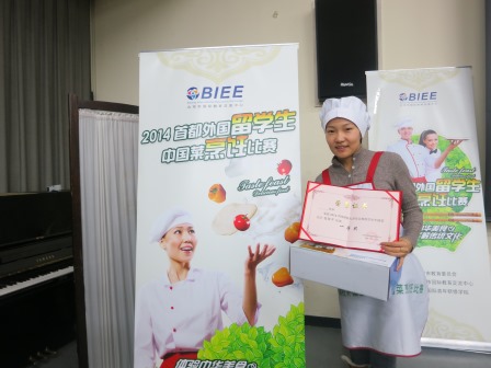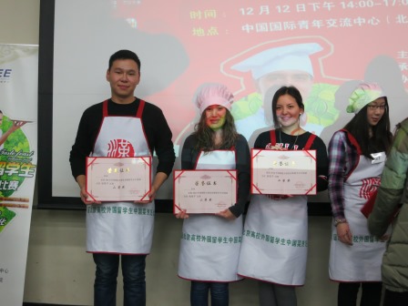 为丰富外国留学生的文化生活,了解中国的饮食文化,增进国际友谊,由北京市国际教育交流中心主办的“2014首都外国留学生中国菜烹饪比赛”12月12日在中国国际青年交流中心举行。我校参赛留学生取得了不凡的成绩。其中:蒙古学生玛雅获得包饺子比赛一等奖,蒙古学生那仁、巴森道尔吉和哈萨克斯坦学生茉莉获得二等奖,哈萨克斯坦学生萨丽获得三等奖。在炒菜比赛中,越南学生陈翠姮和缅甸学生刘玉凤获得二等奖。获奖学生均获得了证书和精美的奖品。