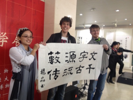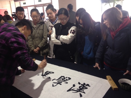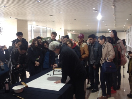 由河南省文物局、中国文字博物馆和我校联合主办的“汉字进校园”展览开幕式4月8日上午在学院南路39号艺术空间举行,我院部分留学生参加了开幕式,观看了展览并现场欣赏了书法名家的书法艺术展示。留学生们为中国文字的悠久历史和书法艺术深深打动,表示一定要学好汉语,更多地了解中国文化。