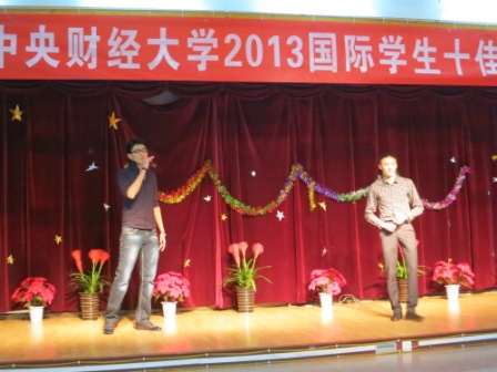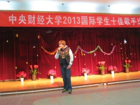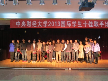 3月20日,“中央财经大学2013国际学生十佳歌手比赛”在教工活动中心多功能厅举行。来自十余个国家的留学生用优美动听的歌声展现了不同语言、不同风情的歌曲。经过评选,蒙古学生塔娜和毛里求斯学生李彦慧组合获得了一等奖;日本学生王城人充,哈萨克斯坦学生别卡、阿拜组合获得了二等奖;俄罗斯学生丽达,土库曼斯坦学生阿里获得了三等奖。