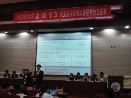 由我院三年级国经贸、金融学专业本科留学生米色丽(蒙古)、李彦慧(毛里求斯)、萨米(博茨瓦纳)、塔娜(蒙古)、雷拉(马里)、特木伦(蒙古)六名同学组成的谈判队,在“2013年中央财经大学英语商务谈判大赛”中,荣获冠军,萨米获得最佳口才奖。此次比赛由国际经济与贸易学院承办,留学生通过参赛,将课堂学习与实际演练相结合,很好地锻炼了商务谈判能力。