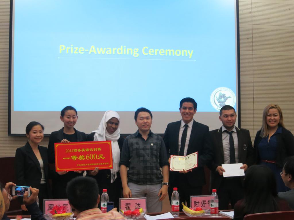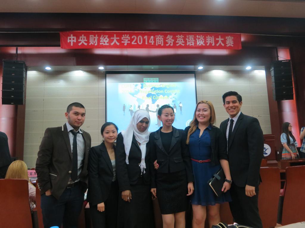 在5月12日晚举行的“中央财经大学2014商务英语谈判总决赛”中,由我院六名国际学生组成的梦之队,荣获一等奖。这也是我院国际学生继去年获得一等奖后,第二次获得这一殊荣。