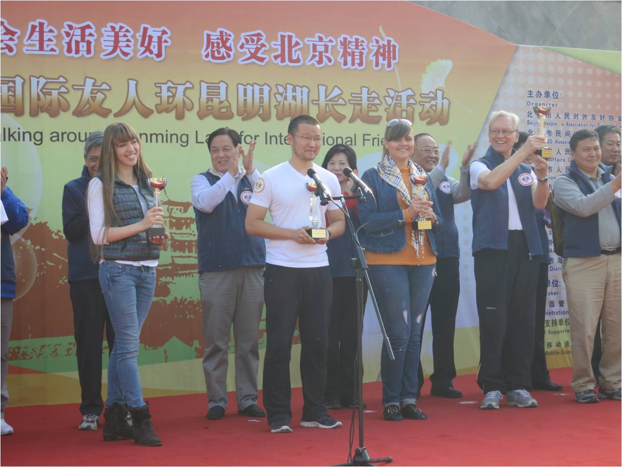 10月27日,我校四十余名国际学生参加了由北京市对外友协等单位主办的“2012国际友人环昆明湖长走活动”。本届长走活动以“体会生活美好,感受北京精神”为理念,使参与者在体育锻炼中融入大自然,享受人与自然的和谐之美,愉悦身心。同学们与八百多名各国朋友相聚在风景秀丽的颐和园昆明湖畔,感受着美景与锻炼的融和。我校在此次活动中,再次获得组委会颁发的优秀组织奖。